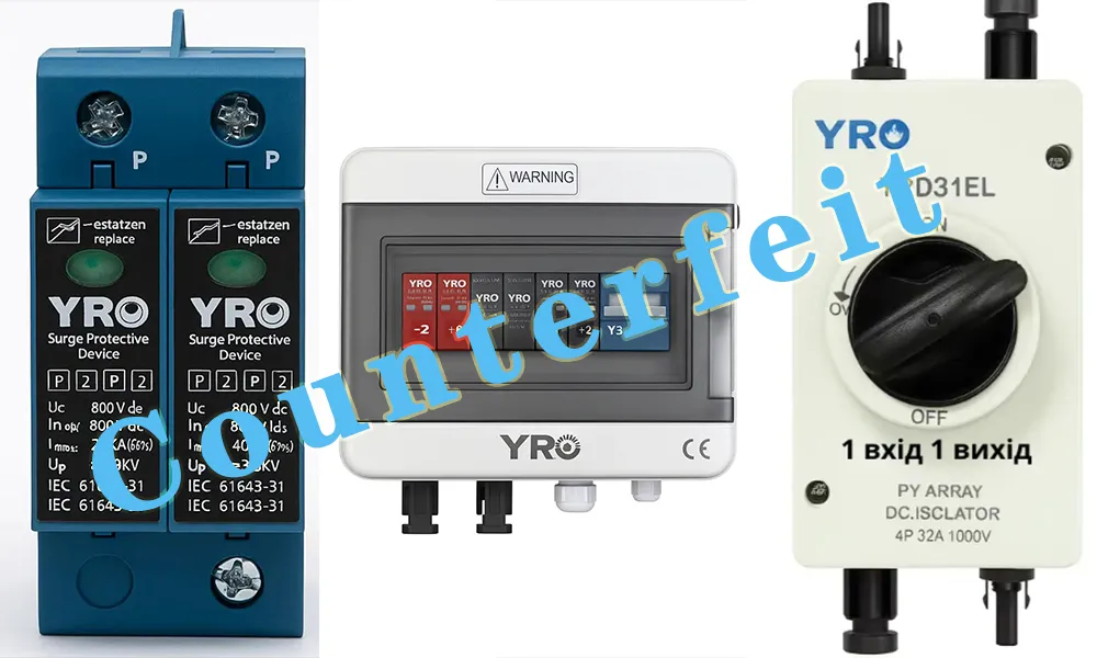 Récemment, nous avons fréquemment reçu des commentaires de clients indiquant que des produits contrefaits avaient été trouvés dans les produits YRO qu'ils avaient achetés, impliquant plusieurs éléments tels que des disjoncteurs, des boîtiers de combinaison et des parasurtenseurs.