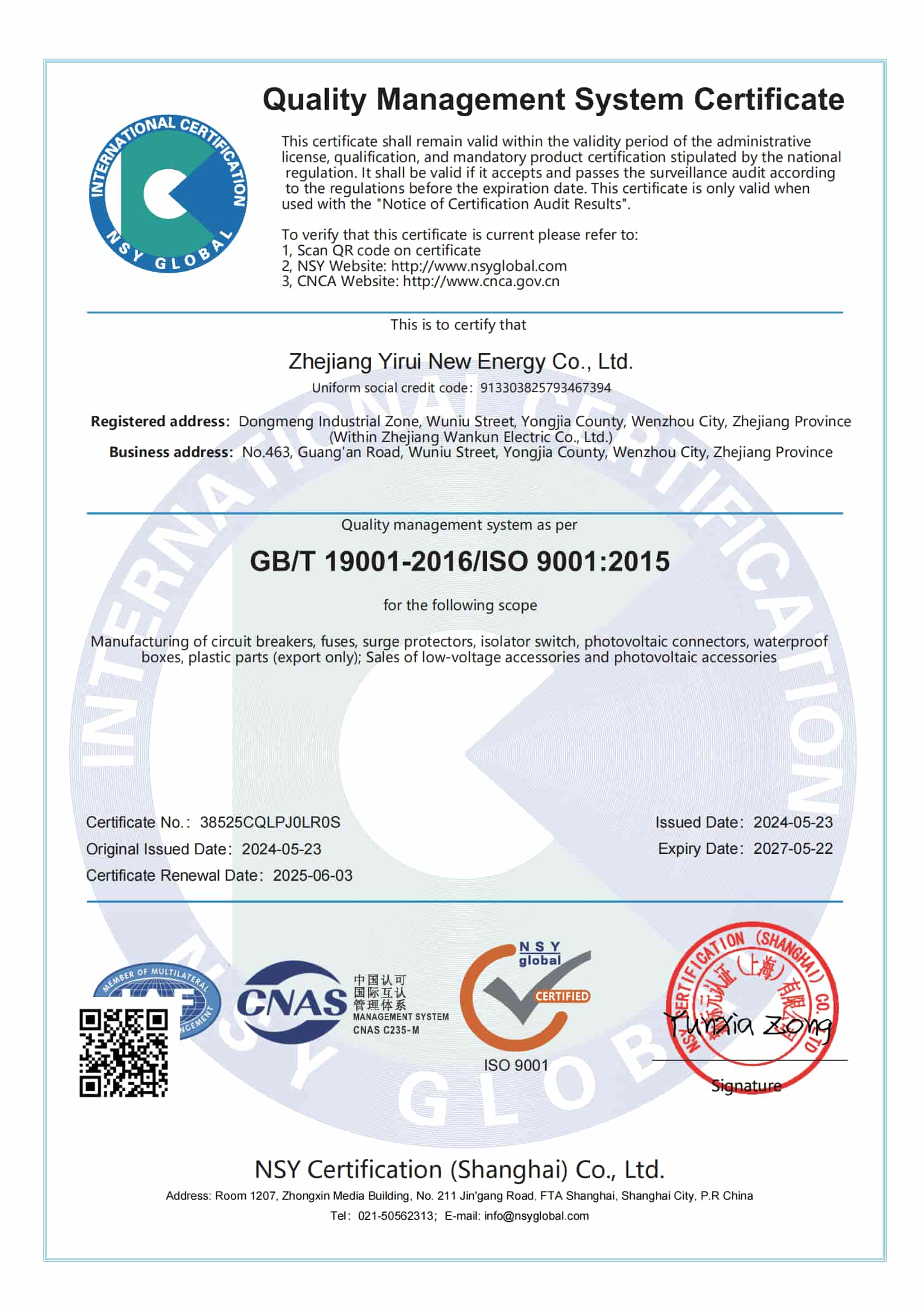 Sur le marché mondial hautement compétitif et responsable d'aujourd'hui, la certification est plus importante que jamais. En obtenant ISO 9001 et ISO 14001, YRO a encore établi sa position en tant que fabricant dans les industries de l'énergie solaire et de l'électricité.